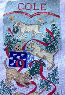 Here's progress on my dear step-grandson's Christmas stocking. It's on hiatus right now, as I've run dangerously close to running out of the background yarn. I have six strands left and am waiting for the shipment of more yarn so I can finish it. It's just about killing me not to be able to pick this up - but I know I need to be patient so I can use the old yarns with the new in case there's a bit of a dye lot change.