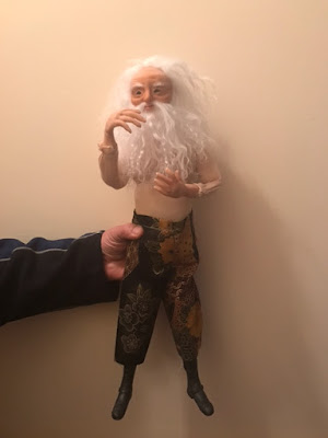 Because he's hand made and each and every doll has different dimensions, there was no pattern whatsoever for me to follow to make his costume. None. Nadda. I watched a costuming DVD that was very straightforward. Easy peasy, right? Not for me. (Did I mention I can't sew)?